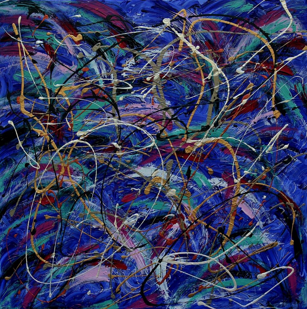 Gwen Tooth, Indian Ocean Variations #9, acrylic on canvas, 36 x 36 x 1.5 inches