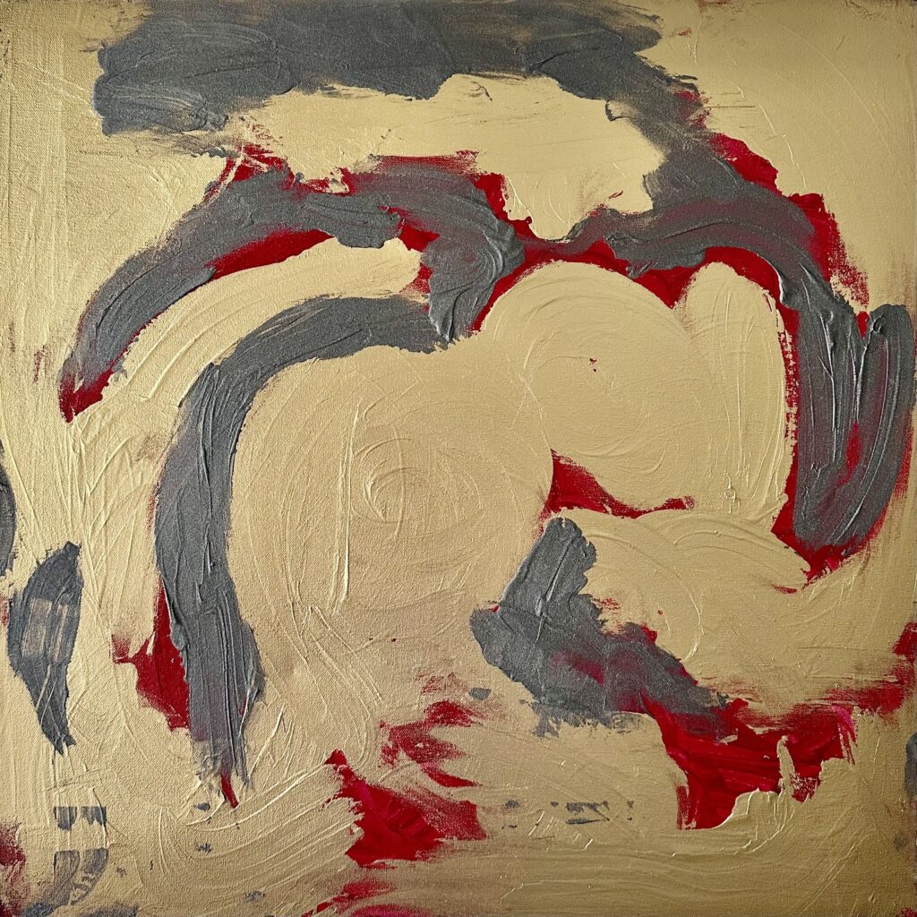 An Original (Just Like Gwen) by Linds Miyo, a longtime friend and fellow artist, remembers Gwen Tooth’s fearless use of colour and her encouragement to explore art as an adventure. This abstract reflection speaks to Gwen’s impact on the local art scene. The artist’s statement relates the story of a trivial chat, with Miyo claiming that it “renewed my spirit and brought me back to myself in a way I can’t even describe. Gwen had that effect on people. She was an original, and I’m thrilled to submit this original for her show.” I find that this piece particularly illustrates Tooth, as despite not having known her, but learning of her through the Gallery’s content and Tom Taylor, one comes across a similar picture that is precise as it is wild – the bold colour, methodological blending and unrestricted geometric forms. The white space at the top makes me feel there is room to feel, think, and evolve, echoing a saying of Gwen’s that Tom Taylor shared with me about her being in constant conversation with her canvas.