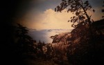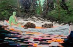 There is a horror movie look to some of the paintings as if Dorland is afraid to be there, in an unfriendly landscape surrounded by menacing black trees.