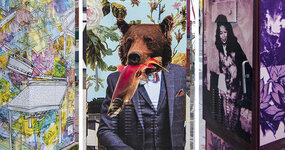 His collection and composition of found and photographed images, once extracted, are then peeled, layered, repeated and rephotographed. The cinematics of space and person recall a broader narrative.