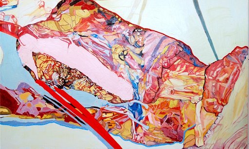 Kim enhances her rather morbid imagery with delicate strokes and colors – so the ugly body parts go through a metamorphosis and become almost beautiful.