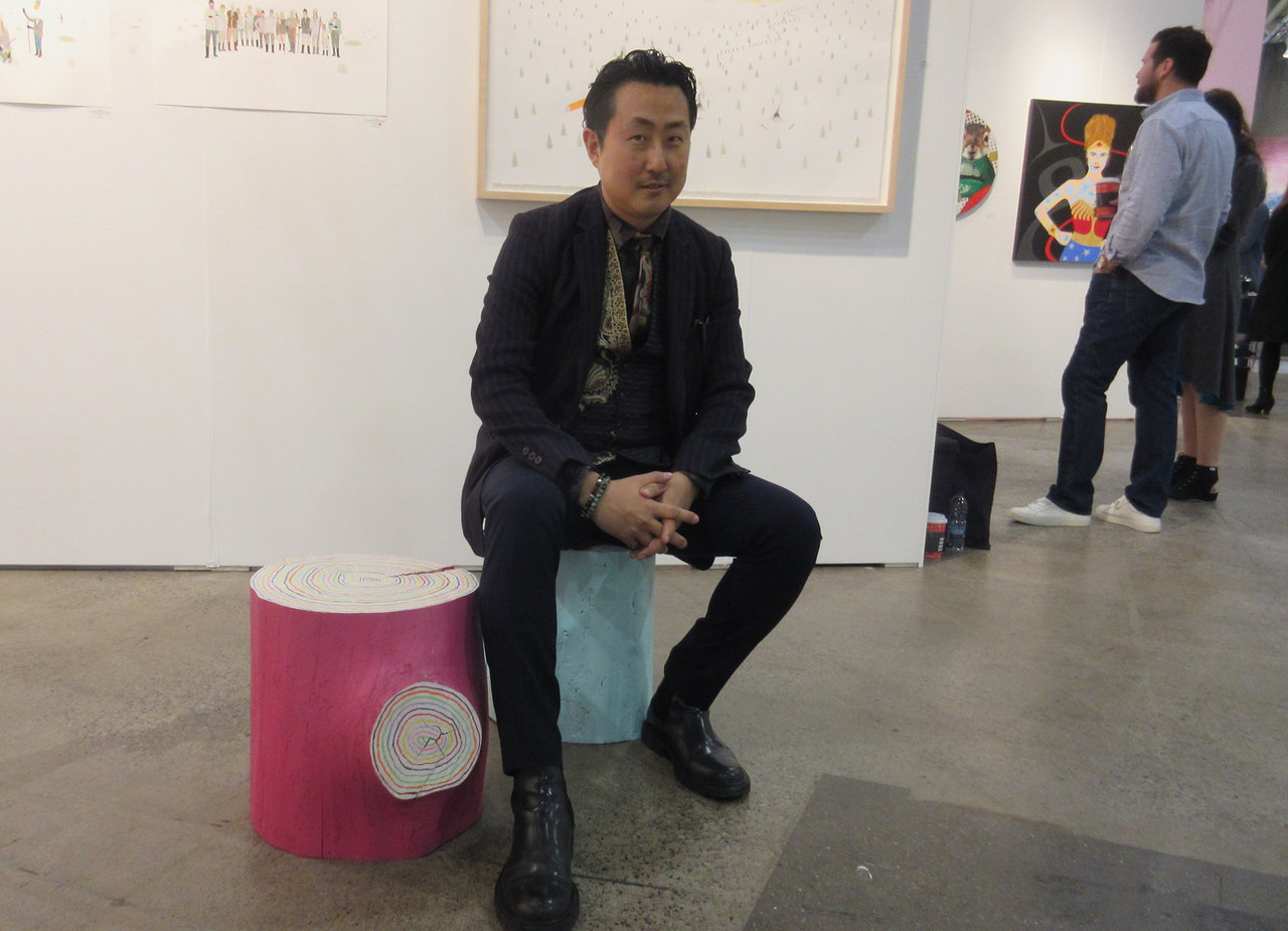 The Fair looks very different from previous years, much better. It seems more organized, easier on the visitor to walk the floor without missing out too much. We decided to walk around the perimeter first, then walk in circles in the middle section – and it worked, sort of, because I kept walking in all directions when something caught my fancy, like superkül’s seating structure that responds to the mushroom column heads found in the Tower Automotive Building, MOCA’s new home. MOCA with superkül is sharing proposals for its future entry floor landscape and you can join in.