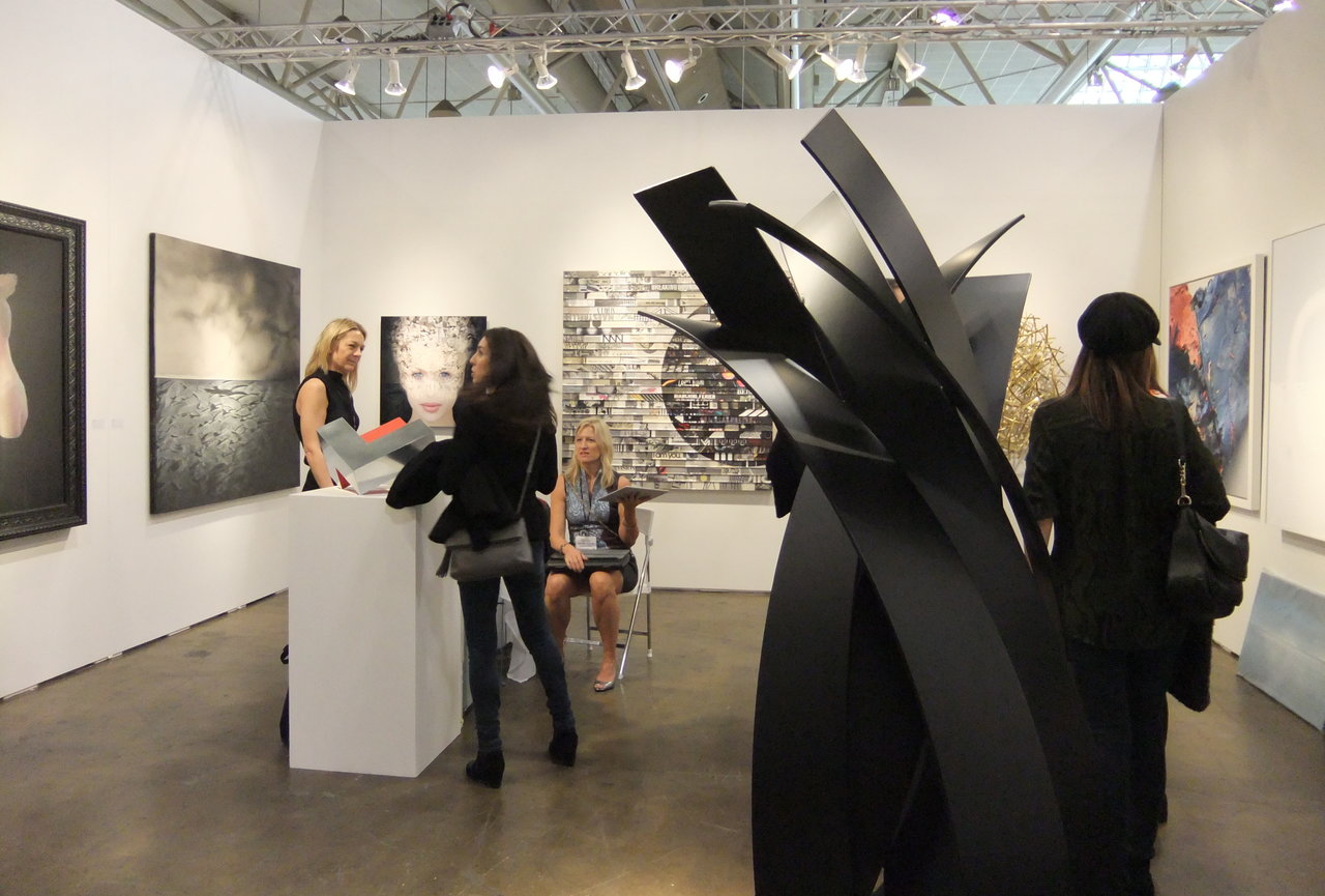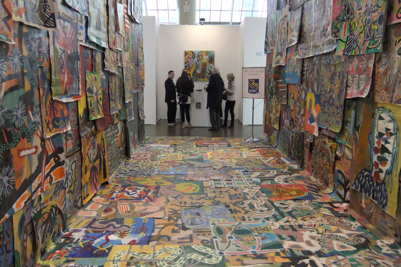 One of the first things you run into upon entering the Fair is the RBC Lounge where you walk through a tunnel covered by paintings followed by the RBC Painting Competition. Walking further on the right side we talked to Alex Leibner from Galerie D’Este. He said that the Montreal Gallery exhibited in Art Toronto many times and this time seems to be successful too.