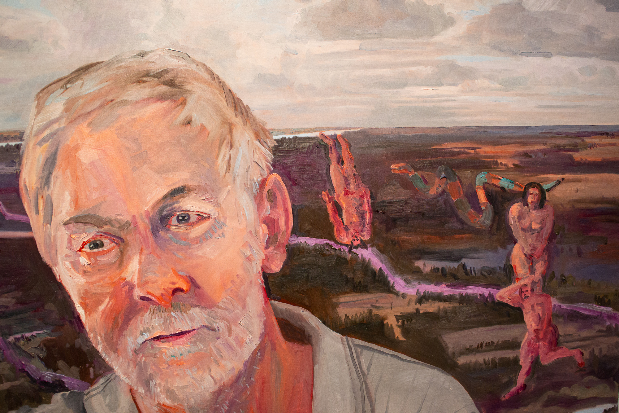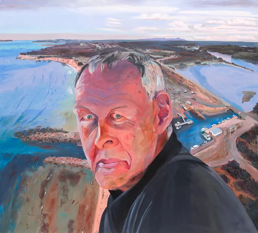 John Hartman, Linden MacIntyre Above Little Judique Harbour, 2018, oil on linen, 60” x 66”. Courtesy of Nicholas Metivier Gallery