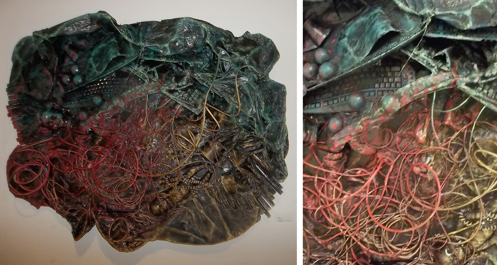 Esther Kim had a heavy steel sculpture Severed Tongue that protruded into the gallery space, challenging the visitors’ sense of humour. Found objects made up the work titled Digest by Catherine Hois, picturing the rather bloody work of our digestive system, not very appetising but still remarkable in its chaotic way.