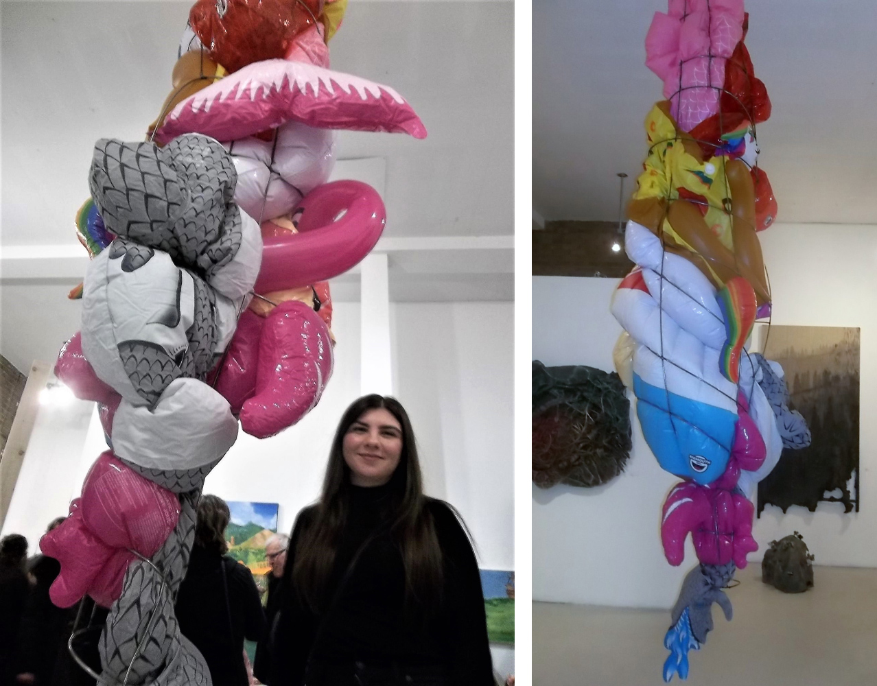 Stephanie Romeo’s Trapped, a 12-foot sculpture of inflatables is hard to miss soaring downwards from the 14-foot ceiling.