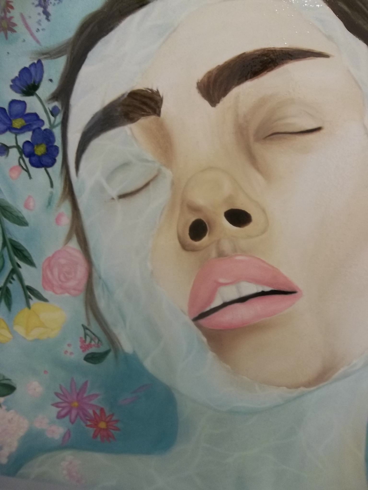 Another impressive painting was Little Reminders by Rebecca Levy, depicting a young woman’s face in a mysterious state, that might be a dream or an ecstasy.