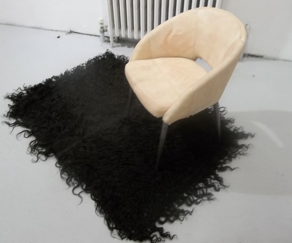 One of the first installations you see upon entering the gallery is Leather and Hide, a rather innocent looking chair and rug until you realize that the chair is built from sewn together pieces of silicone and the rug is made of human hair.