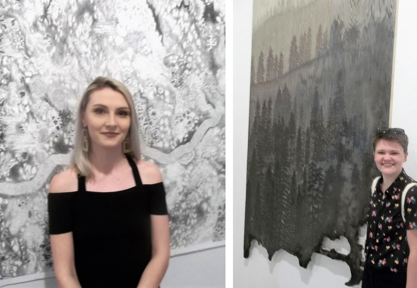 Another large work is Affliction by Heather Smith, a large acrylic work on unprimed wood, where part of the wood is charred from burning. Rock Surface Growth by Olivia Williams, a large graphite work on paper, is very appealing with its details.