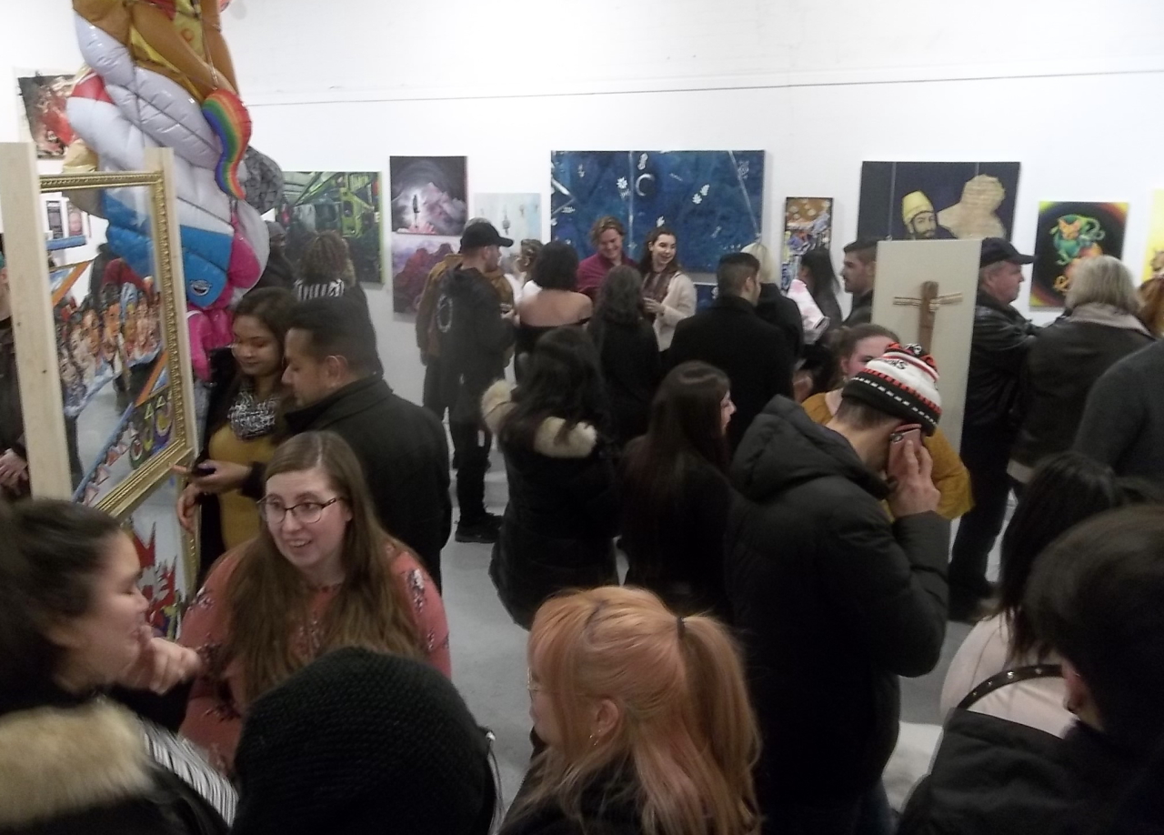 With some 36 artists in the exhibit it was hard to navigate at times, as the reception was busy with visitors exploring each new work and chatting with the artists. Faculty members Janet Jones and Michel Daigneault were there to congratulate the students.