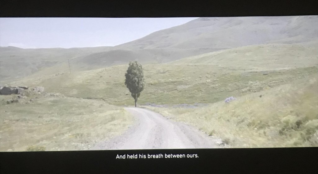 The gallery is also screening Weak Enough to Hear by Pejvak. The video features six acts showing the landscape of the Euphrates River in Turkey. Various characters including an engineer, an architect, some children, an Islamic leader and smugglers take turns discussing the history of the river from both human and geographic perspectives. Even the ground gives us impressions that help to paint a portrait of the river.