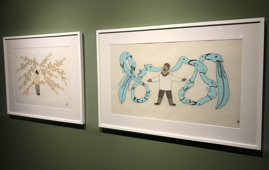 Two artists, Qavavau Manumie and Ningiukulu Teevee from Cape Dorset, Nunavut showcase their prints and drawings that each incorporate Inuit heritage and spiritual beliefs by depicting folklore and allegorical symbolism. They celebrate the culture of the Inuit people, and present us with an alternative way of life that cherishes the land and water, and believes in sustainability.