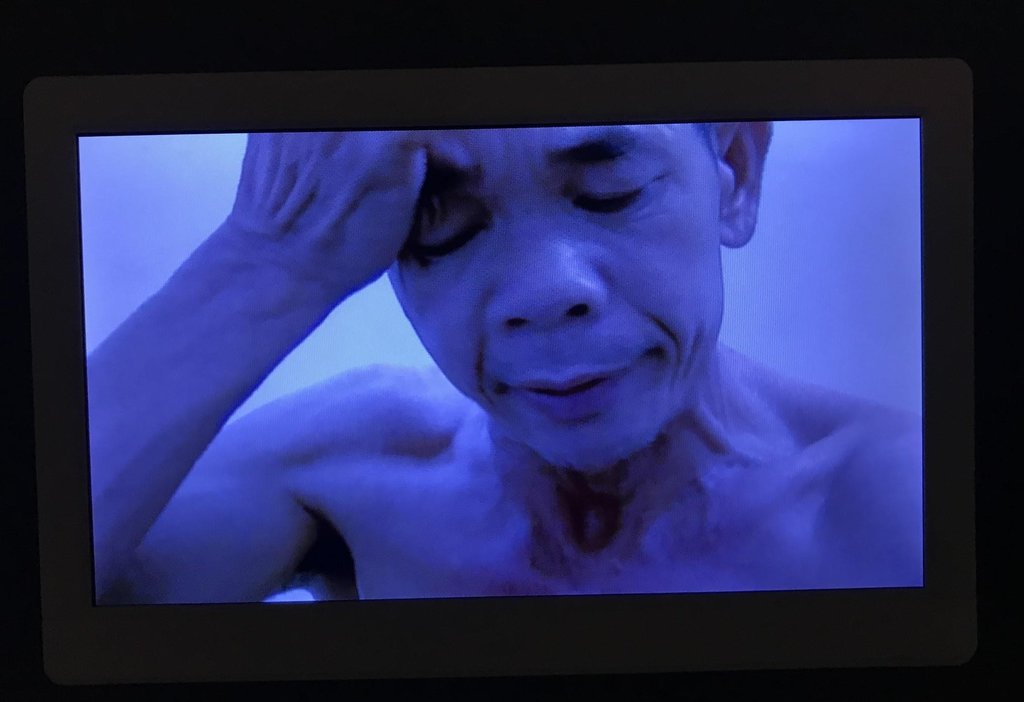 Not unlike animals, humans also try to survive in their environments, as we witness in the work, I want to breathe by Li Xinmo in collaboration with Zhange Minjie. A small scale, close-up video portrays a Guangxi gold miner afflicted with silicosis as a result of dust inhalation. The piece is intimate and unsettling, as the figure repeatedly coughs and struggles to breathe for the entire looped duration. The ethical questions raised in the piece refer to issues surrounding both human rights and contamination of the land through mining practices. As technologies advance and demands for natural resources increase, it is easy to ignore the vulnerability of the human body. It is hard not to empathize with the pain the miner is going through, and the inherent desire for the body to keep breathing.