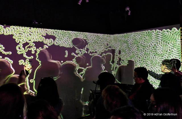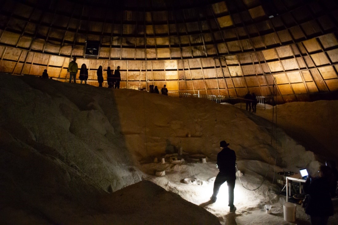 Moving East, I was drawn to the illuminated entrance of a large domed structure. The dome houses a massive pile of winter road salt. Under the centre of the dome, artist Jonathan Schipper had installed a 3D printing device that was building structures out of salt and water. Visitors could walk up and over the mountain of salt to watch the activity below.