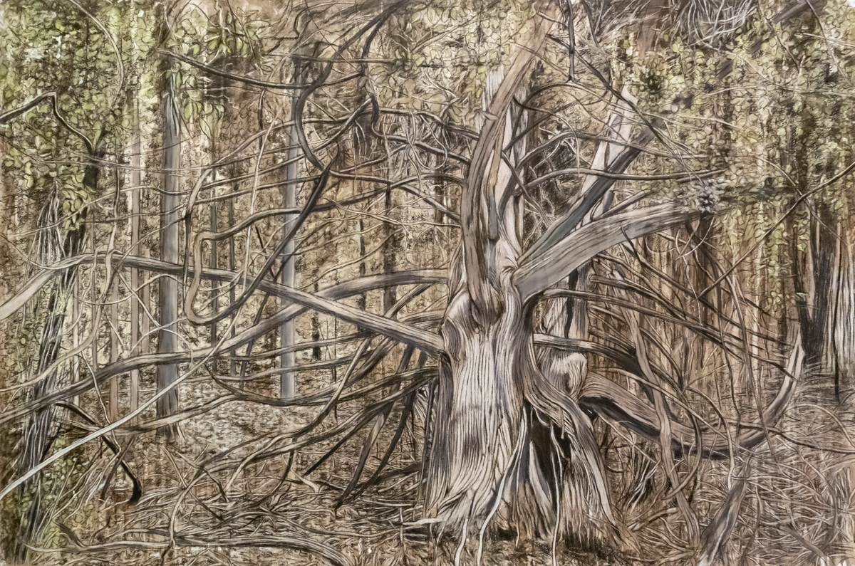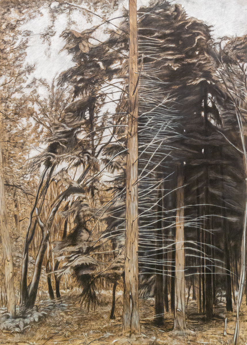 “Dead Tree, Rouge Valley”, 2019, pastel and charcoal on paper, 40 x 60 in