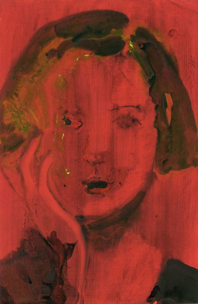 Margaux Smith, Red Portrait, 2019, water colour on paper, 9” x 5.75”