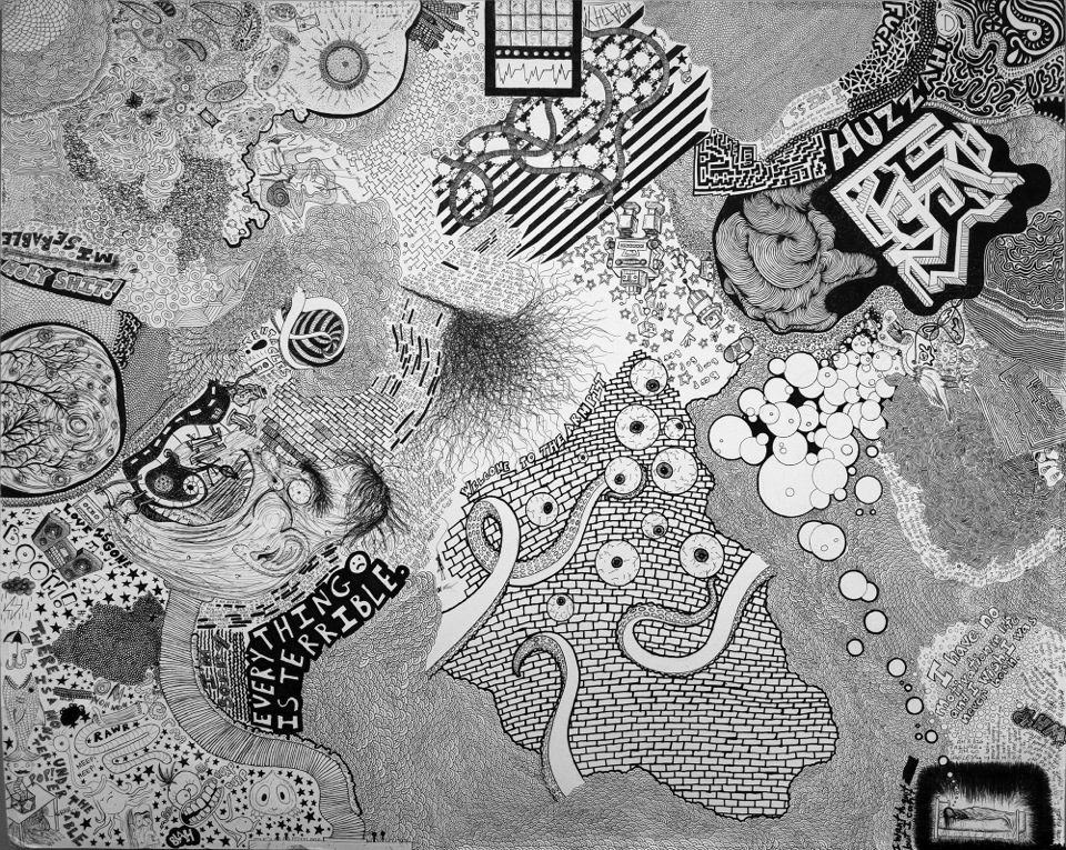 Melissa Arruda, Anxiety Drawing #4, 2020, ink on bristol board, 30″ x 40″