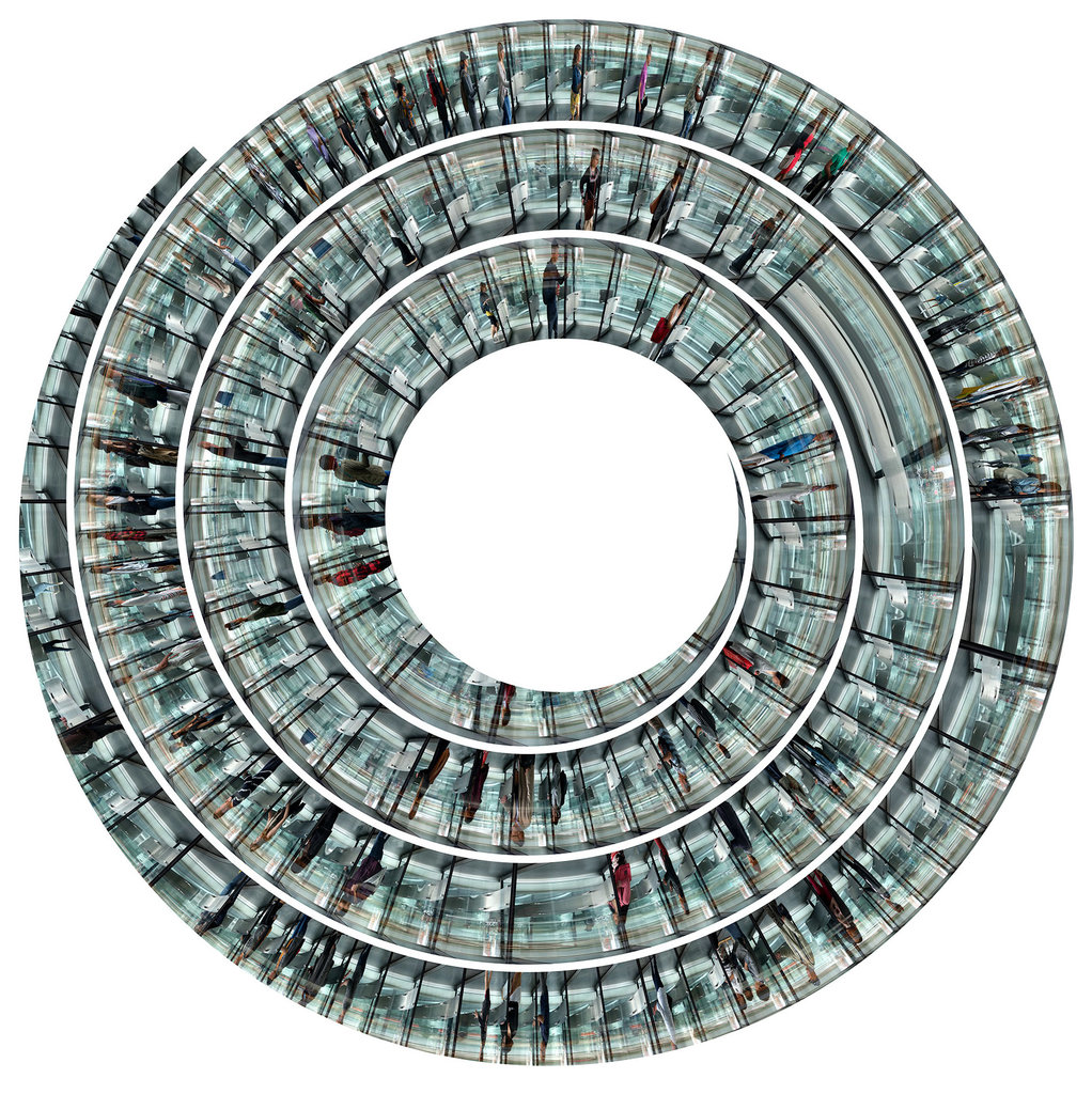 Consider, for example, the submission by Harold Sikkema titled Revolve Face. It consists in a spiral of distorted images derived from a camera aimed at a revolving door. It shows various people pushing on the plate glass on their way in and out of a building. It is in some ways an arresting image, but in what sense is it a drawing?
