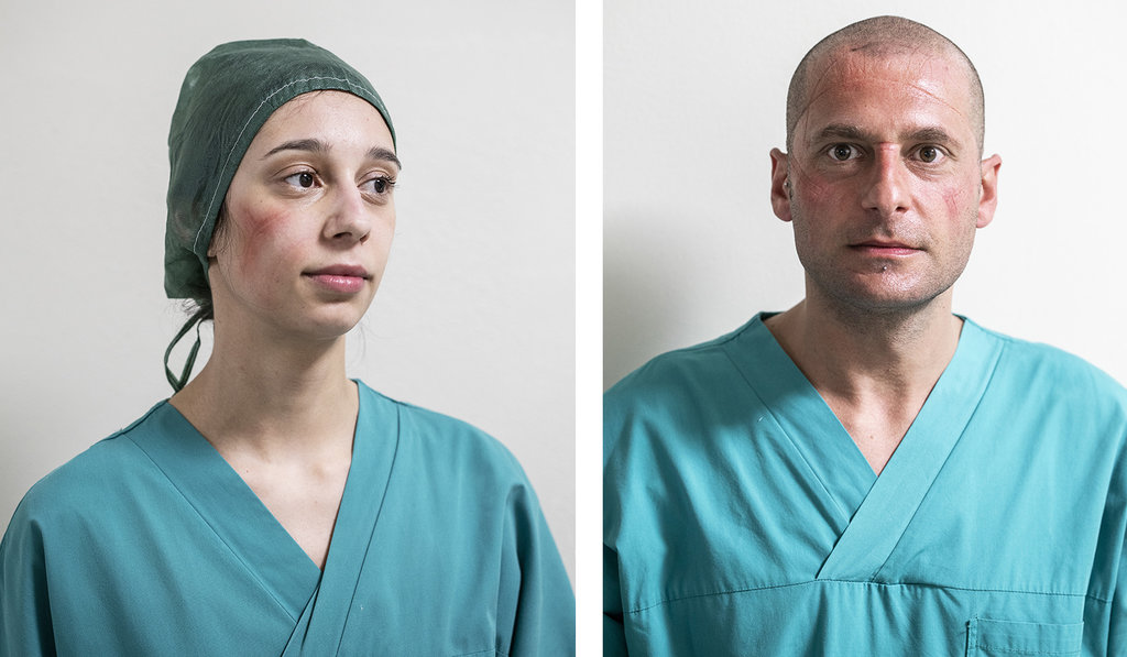Alberto Giuliani, Giulio Mensi, Anaesthesiologist (left) & Margherita Lambertini, First Aid Surgeon (right), 2020. From the series San Salvatore