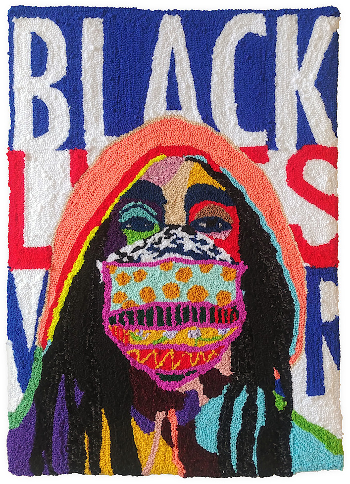 National winner Simone Elizabeth Saunders, Alberta University of the Arts, It Matters, hand-tufted and punch needled textile, 32 × 23 × 0.75 inches