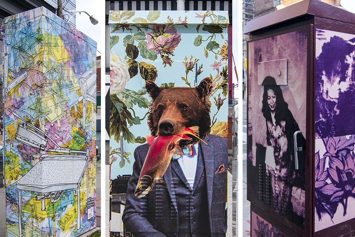 Detail of traffic signal control cabinets by (L – R): Pudy Tong, Meggan Winsley and Brenda Joy Lem