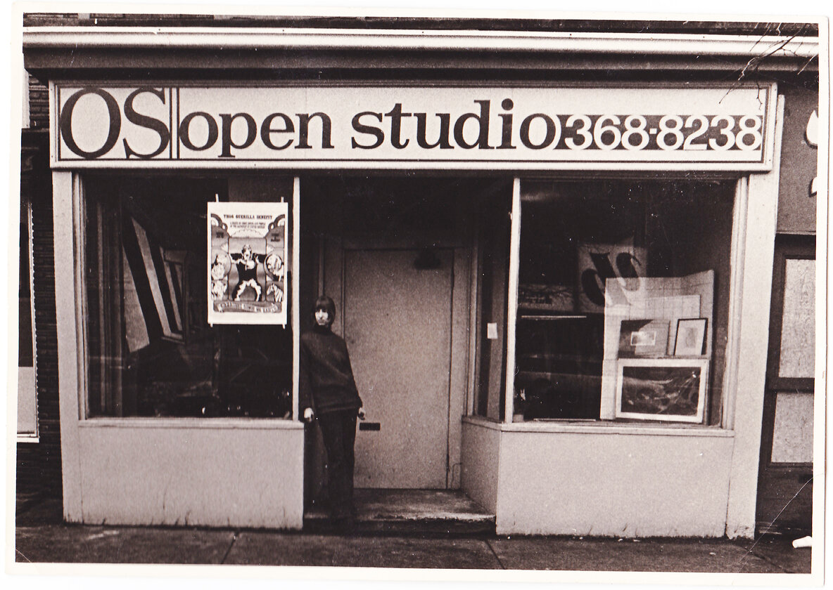Open Studio Co-Founder Barbara Hall standing in the doorway of Open Studio’s first location, 310 Queen Street West, c.1971
