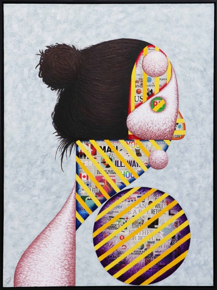 Christian Butterfield, Randoms, 2019, acrylic and collage on canvas, 48 x 36 in. Courtesy of Corkin Gallery