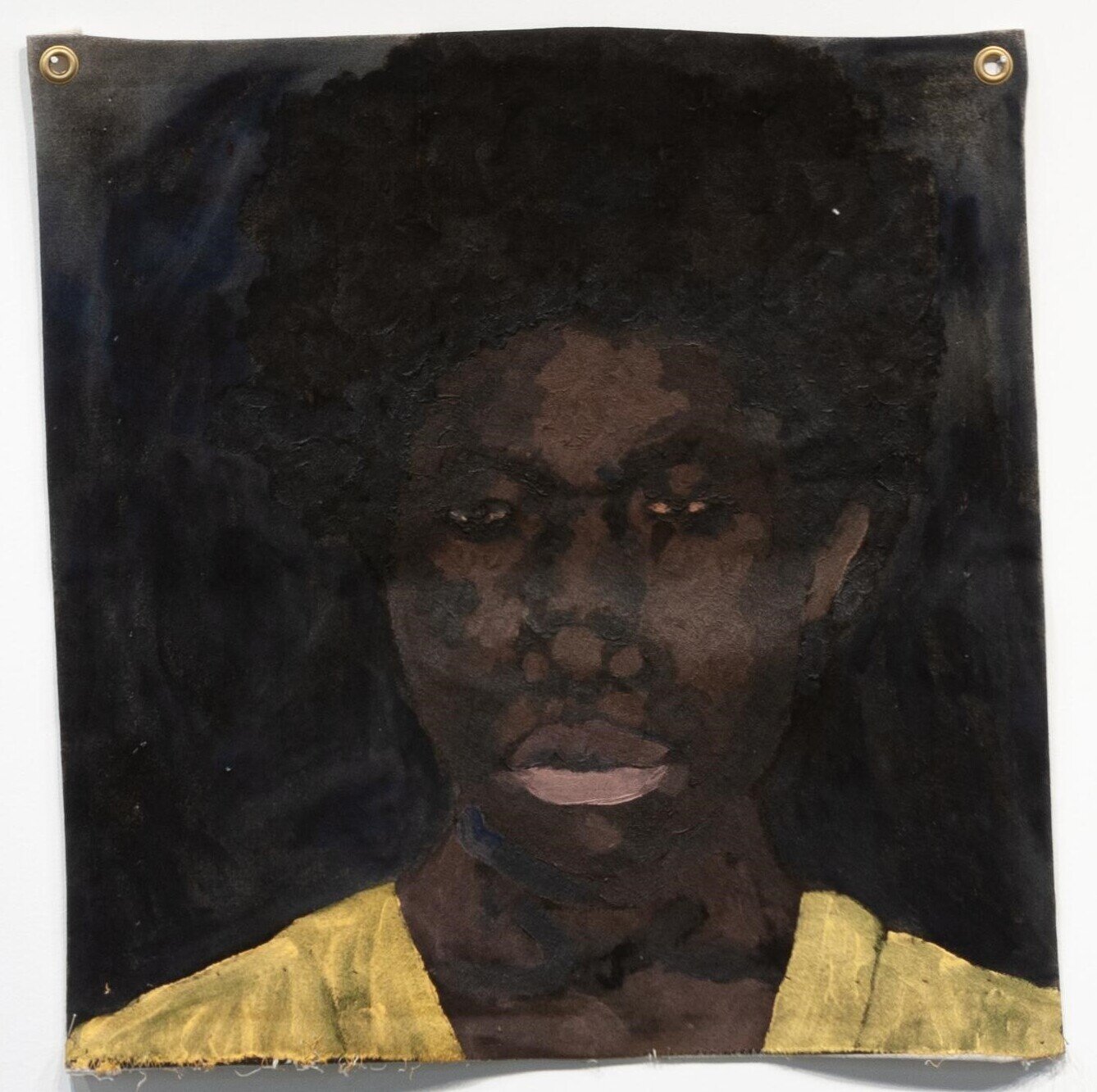Preston Pavlis, Untitled 1, 2021, charcoal, acrylic, and oil on unstretched canvas, 21″ x 21.75”