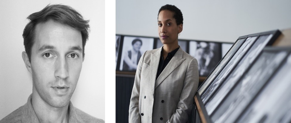 The other curators: MOCA adjunct curator Rui Mateus Amaral. Photo by Gun Roze (left) & guest curator of GTA21 Daisy Desrosiers, Director, Gund Gallery. Photo by Gabe Souza (right)