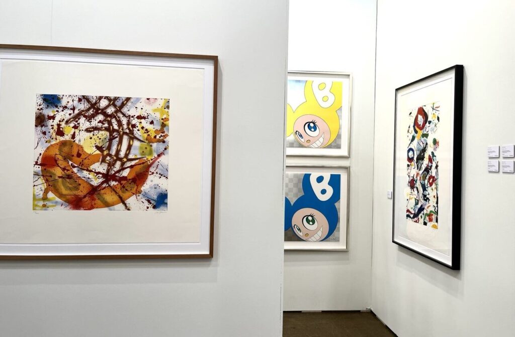 Sam Francis, (left) and works by Takashi Murakami at Galerie Raphael, Frankfurt