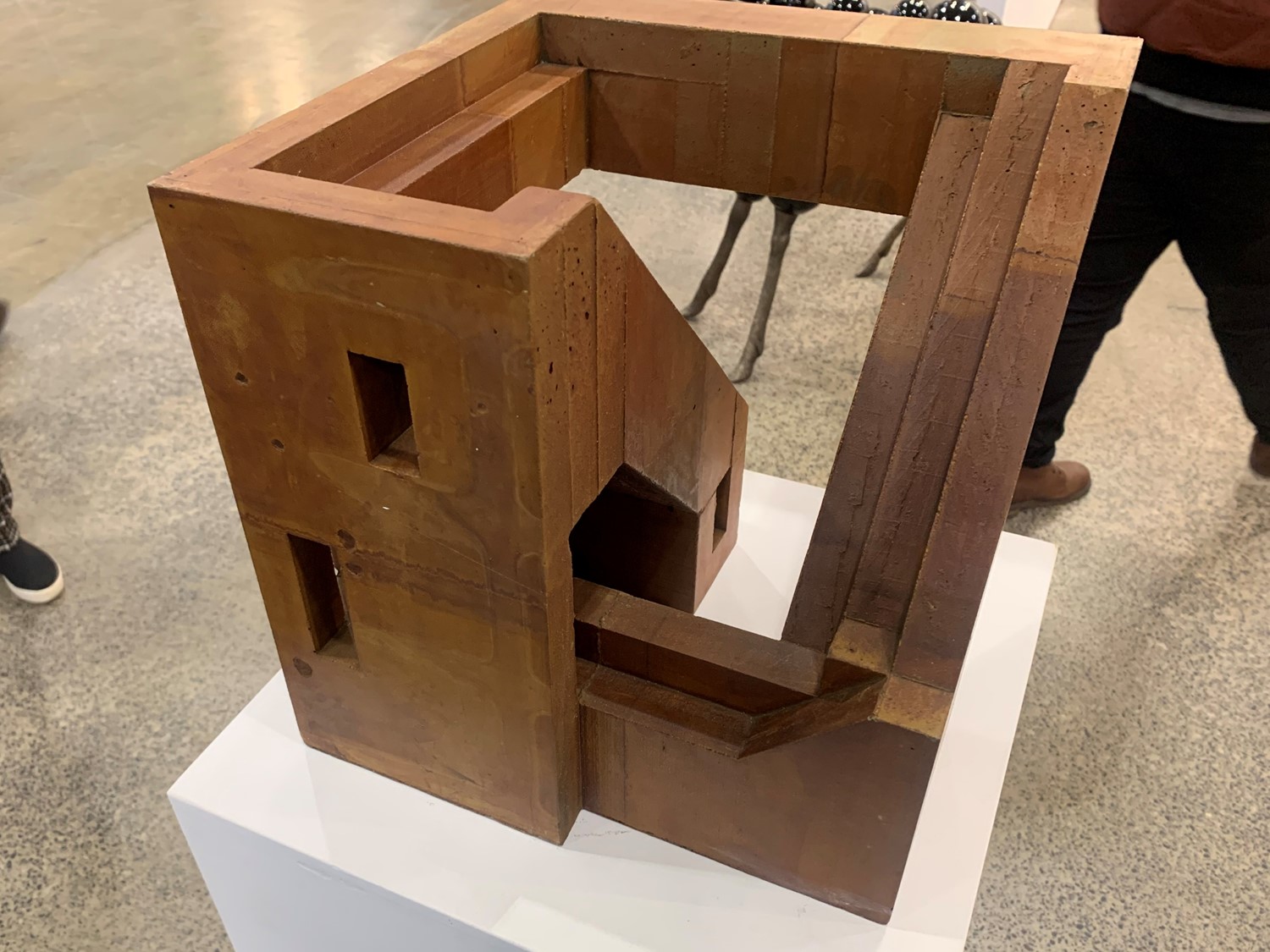 Galerie Mur have two concrete sculptures by artist David Umemoto. They are complex miniature architecture made from cast concrete. They allude to buildings but remain abstract and enigmatic. They make you move around and look at them from all sides.