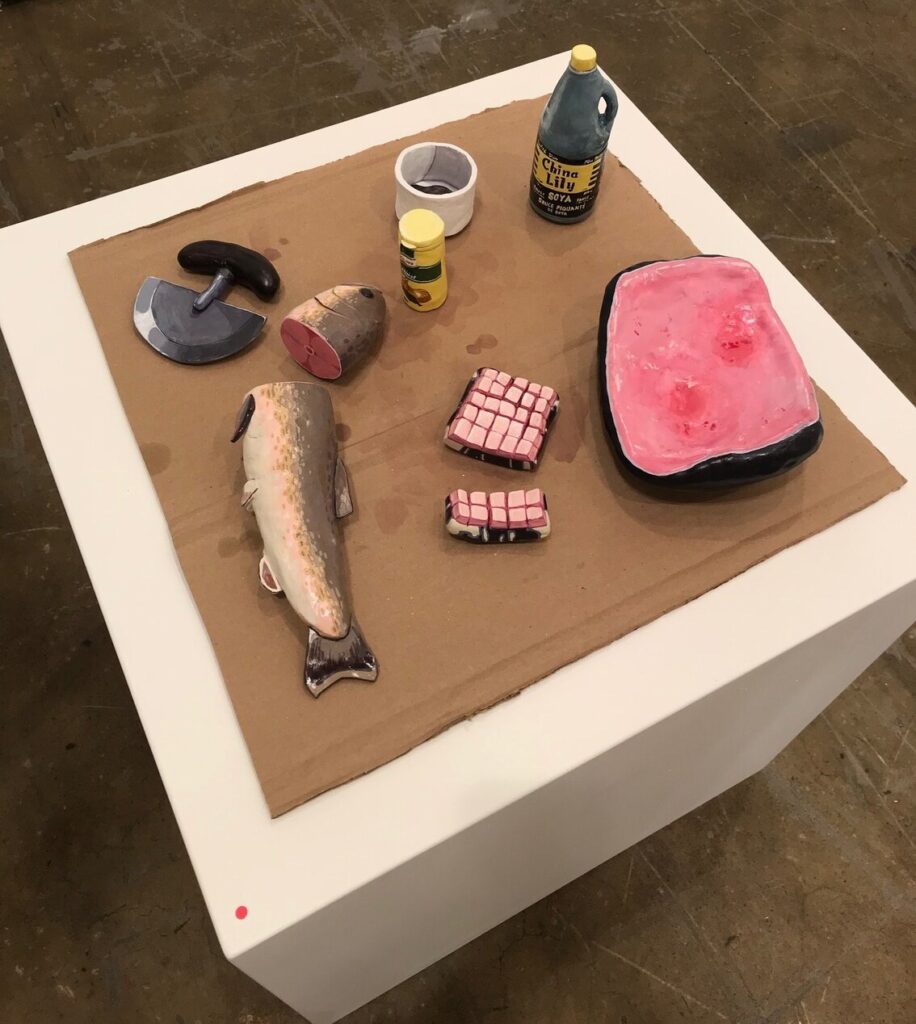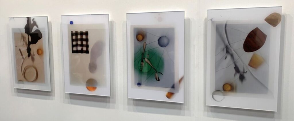 At the RBC booth (RBC is a sponsor of the fair) there are four photographs by Nadia Belerique (represented by Daniel Faria Gallery). At first glance they are compositions of mostly recognizable objects, but it gets more confusing on closer inspection. How are these things physically composed and arranged? You will have to look closely to figure it out!