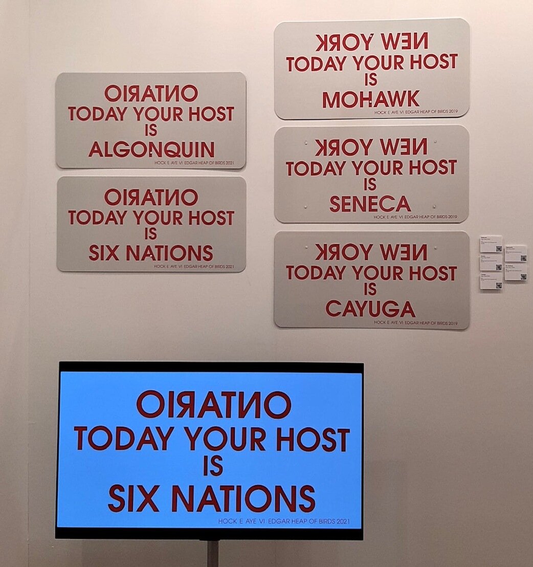 Edgar Heap of Birds, a Cheyenne/Arapaho artist collaborating with K Art Gallery, spoke about his practice. The gallery included a scaled-down version of one of his pieces, as well various signs which he has exhibited at numerous university campuses. His work highlights the importance of indigenous identity and sovereignty within colonial contexts. He also spoke about the difficulties young artists face in the beginnings of their careers, and his own decision to represent himself as an artist.