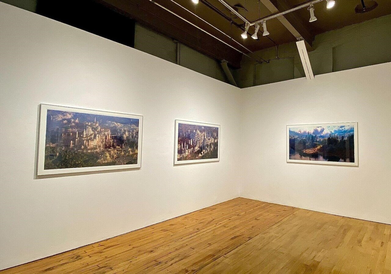 In Mathew Borrett’s solo exhibition at The Red Head Gallery, A Break In The Clouds, archival inkjet prints of landscape views are combine the real world with unreal elements and perspectives. Densely packed architecture and thriving natural environments are the fundamental components, but the perspectives give viewers a sense of an apocalypse. In fact, there are no human beings or animals in most of his works. The well-built cities and the endless railways seem more likely a relic from human civilization.