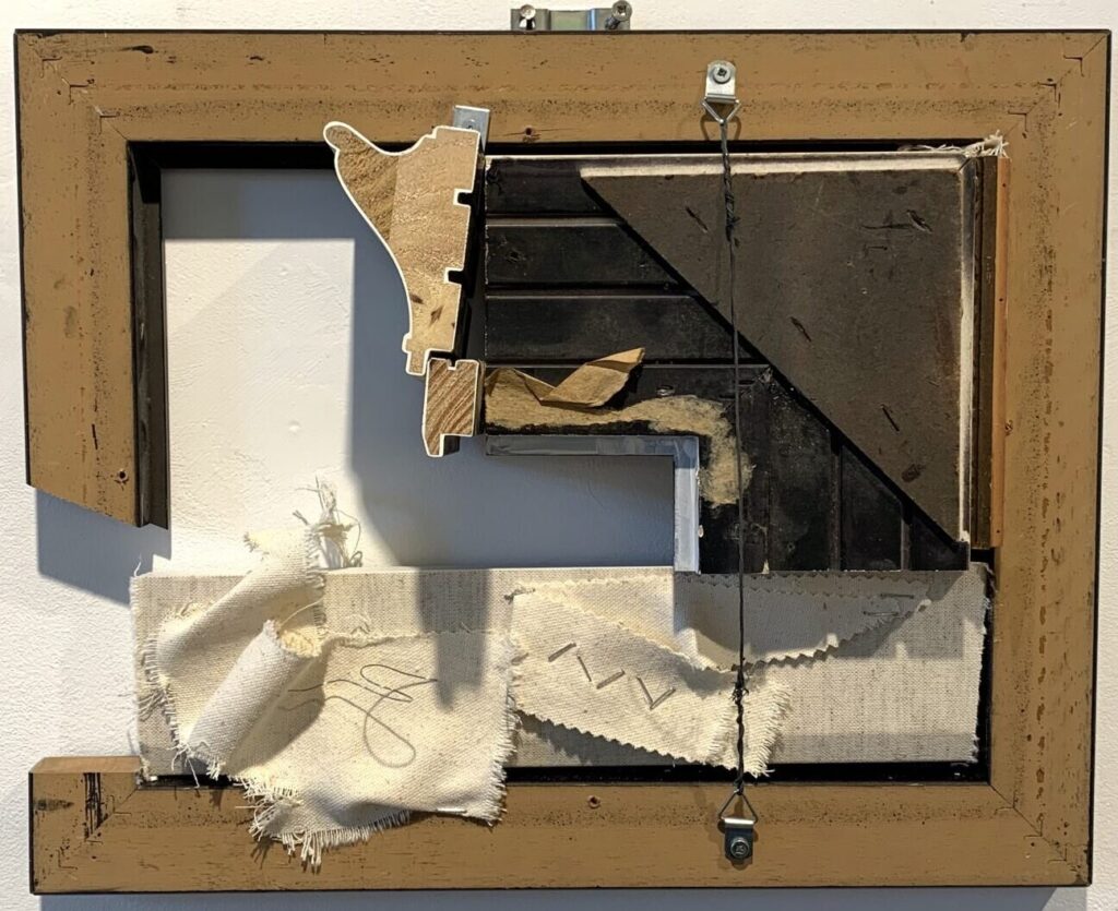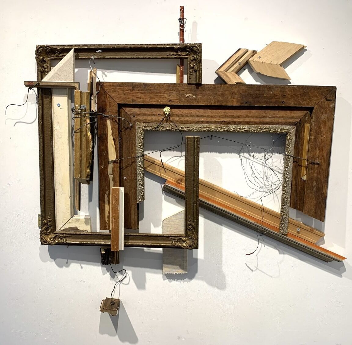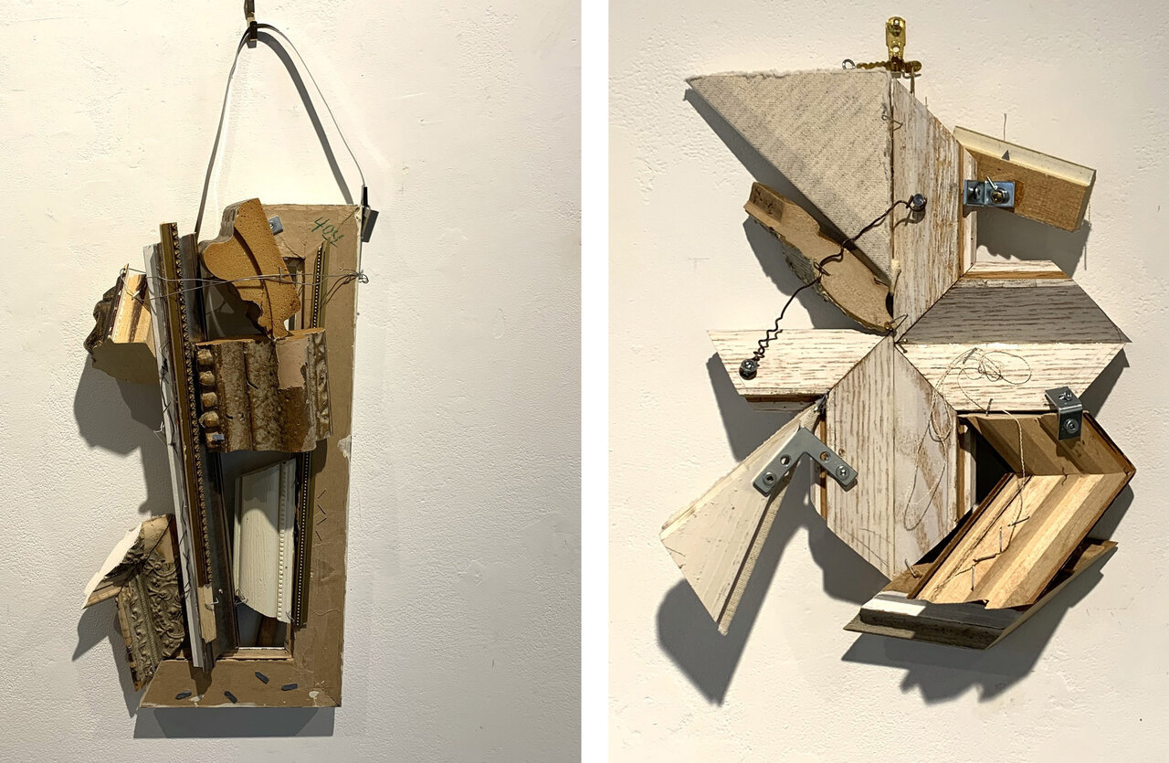 Doris Purchase found it “A little wild working with what I had in my studio perhaps meant to be leftovers: from starting larger pieces and from finished pieces, off cuts, frames, bric-a-brac, wires and nails.” She recognized that when the pandemic hit things fell apart. She called it ‘force limitations’ for staying in a limited space with limited supplies.