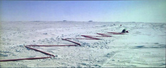 In the basement of the gallery, you will find a video of Maureen Gruben performing a large-scale land art. From above, the vividly red broadcloth arranged in a zigzag pattern against the white snow looks like the land is sewn together with a zigzag stitch. Making the artwork is undoubtedly labor-intensive. According to Gruben’s website, three hundred meters of broadcloth is placed in 111 ice holes, stretching nearly a thousand feet long on the frozen ocean of Ibyuq Pingo. In most of the video, you can only see the broadcloth, but the footprints beside it suggest an invisible artist. There is a sense of vastness of the land and one’s intimate connection to it.