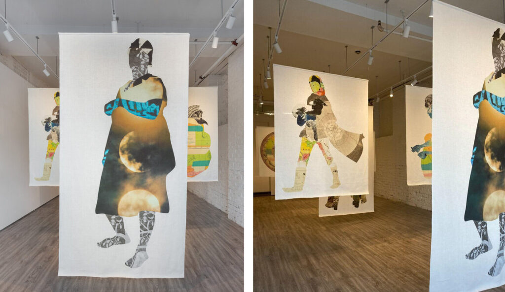 Towards Gallery brought Diallo’s digital collages together to create an immersive space of installation art. The larger-than-life silhouettes of figures seems as though they exist beyond our dimension—even our universe. Visitors encounter these pieces by slowly moving through the exhibition hall, during which they have a chance to sense the interconnection between the metaphorical figures and themselves.