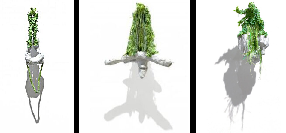 The Dreams of awakening here in this brightness series of diminutive wall sculptures hint at a new life form altogether – leafy flecks of vegetable with the animal, revealing cotton roots and tendrils with the polymer clay and painted bronze. Would these sprigs be the imagined after life of Hay’s humankind – life after civilization’s bardo? In Hay’s imagined life as a tree, souls might find themselves counting tree rings for a thousand years or more.