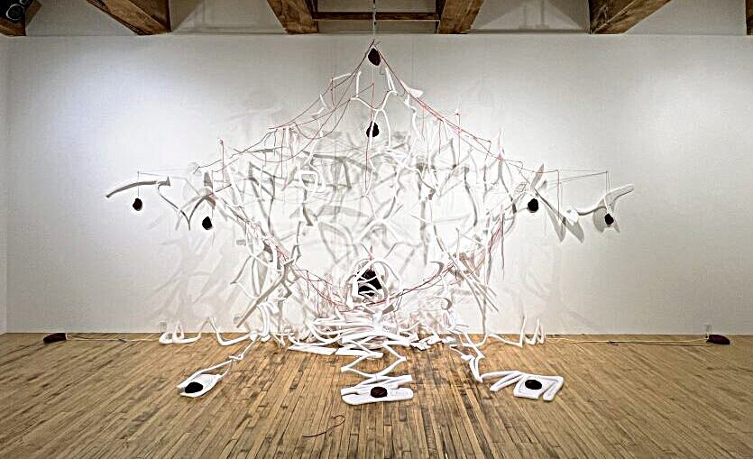 Just as soon as a verb, 2022, rope, sand, fabric, and repurposed styrofoam, variable dimensions
