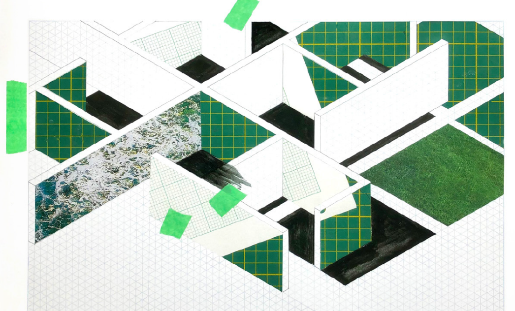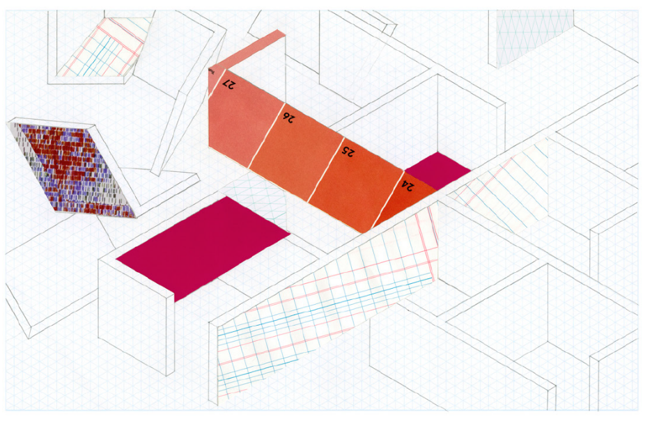 The representation of three-dimensional space on a flat surface involves shared conventions between the creator of an image and the audience. Whether perspective or isometric, we as viewers are habituated to the illusion of depth such that we are not consciously aware that we are re-constructing the space behind the surface in our minds. These self-contradicting collages make one aware of this process as the image switches between depth and flatness.