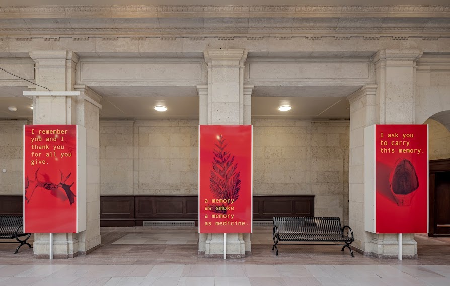 *Exhibition information: I am land that remembers / including artists Iván Argote, Nour Bishouty, Glenna Cardinal, Miles Rufelds, South African duo MADEYOULOOK, Venuca Evanán Vivanco, Amber Webb, Tania Willard and Shellie Zhang, March 2 – May 29, 2022, Union Station west of the Great Hall. The third part of this series, I am land that speaks will take place June 6 – October 2, 2022.