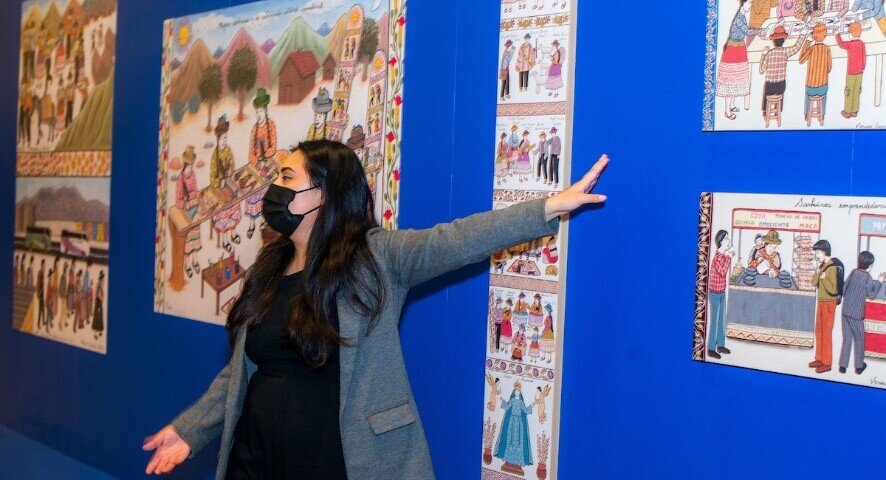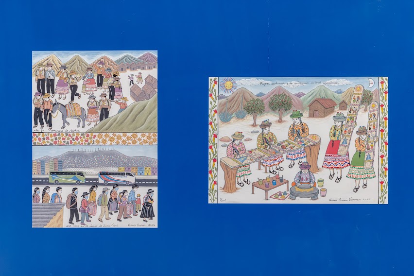 In another poignant display of family history, Sarhuina Women and their Intangible Cultural Heritage presents Peruvian artist Venuca Evanán Vivanco, with her own Sarhuina paintings on display. Sarhuina is a style of painting that is traditionally a male practice, but Venuca teaches this kind of painting method to other women in her community. She encourages women to take part in the creation and economic gains enabled by this skill set, arguing that this is also part of their cultural birthright.