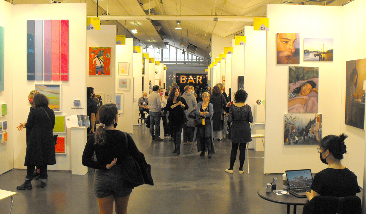 There were people lined up to get into this year’s Artist Project after its absence in 2021, and they were greeted by attendants in what looked like white lab coats—a little tongue-in-cheek post-COVID humour. People might have thought they were lined up for another shot in the arm! Visitors were anxious to return to normal and enjoy actually walking through the Artist Project.