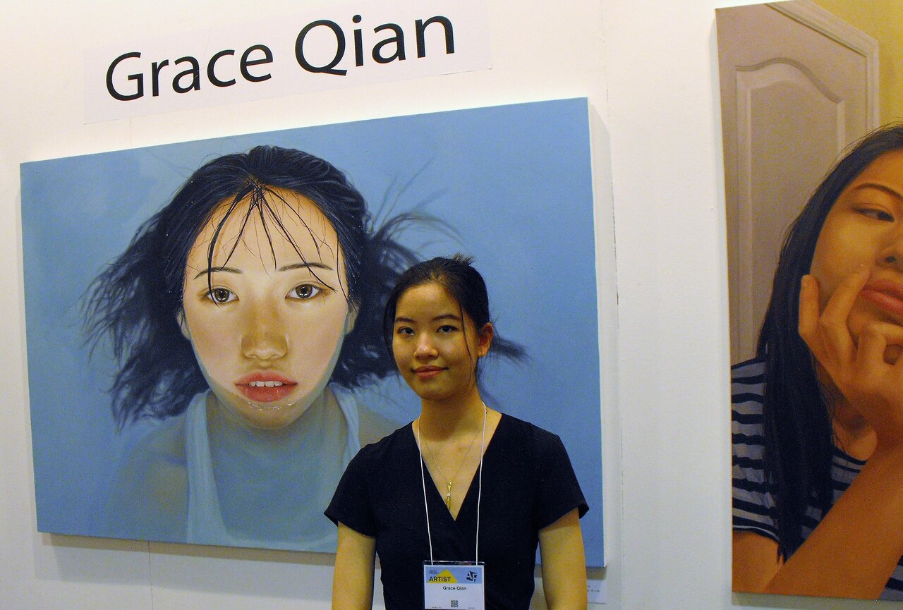 Grace Qian in her booth
