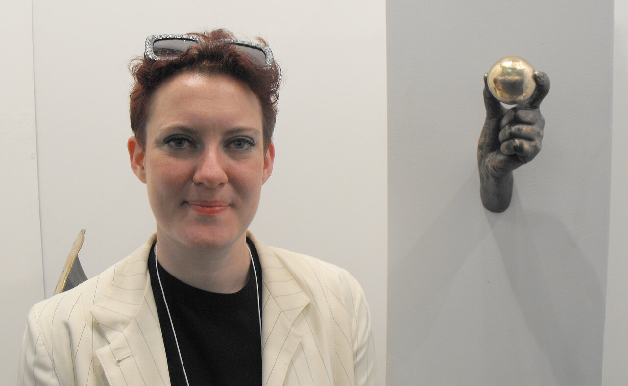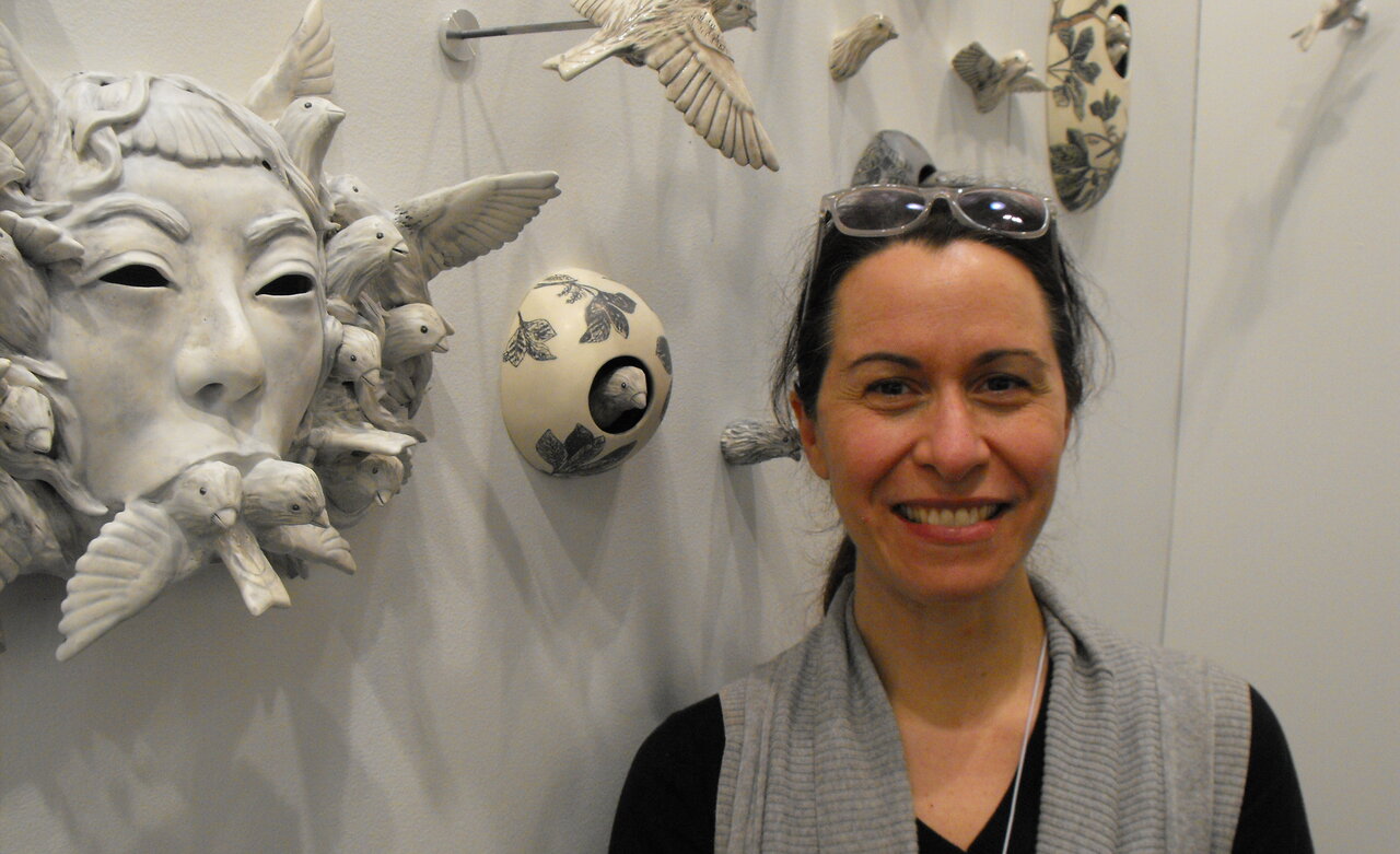 Sandra Tarantino with her sculptural pieces