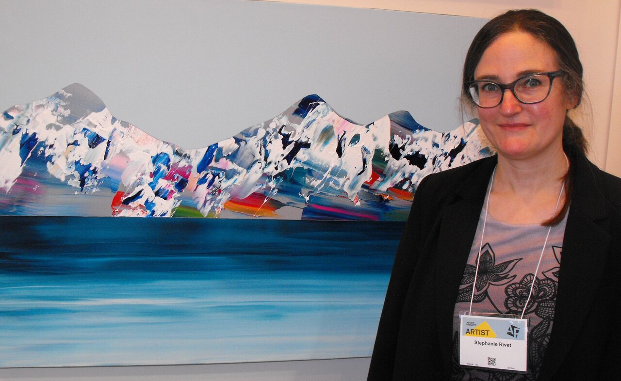 Stephanie Rivet in front of her work