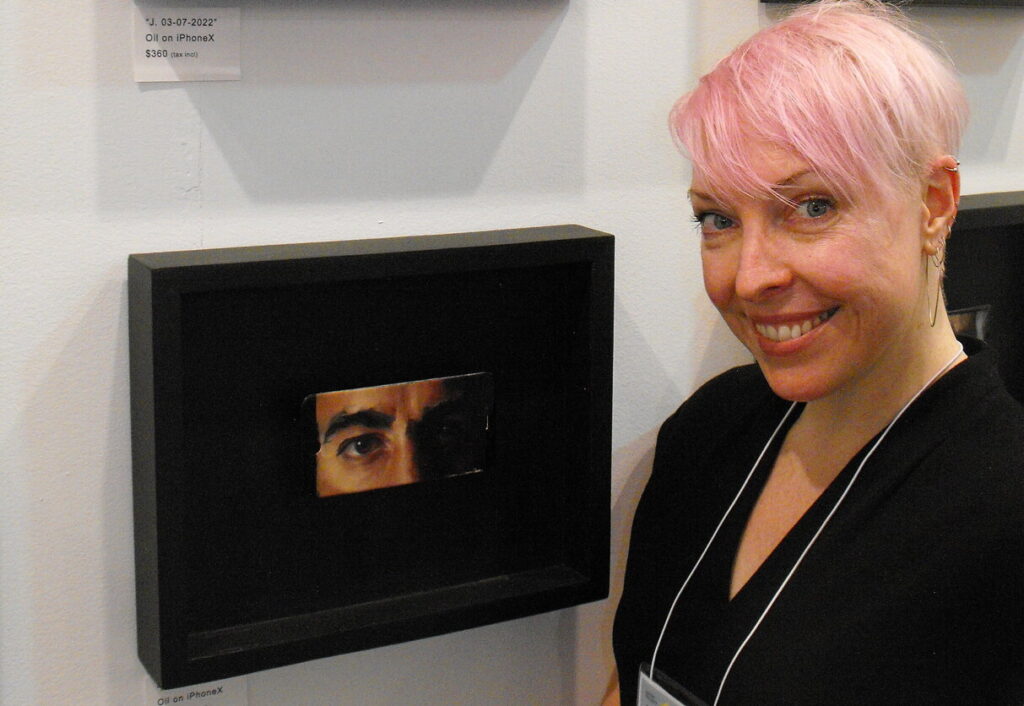 Zoey Zoric with one of her unique portraits on old iPhone