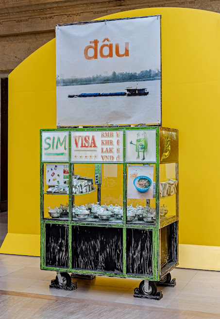 A unique aspect of I am land that speaks are the artists who speculated and presented a supposed future, like Alvin Luong with his Ration Market Special. It presents a fictional scene from the future where mass displacement has begun in order to avoid rising sea levels in Southeast Asia. This inevitable migration will affect Luong’s family in Vietnam as well as many others. Presented is a food cart, it has commodities within it that anticipate the needs of those in transit — and in crisis. The cart includes meals, currency exchange and support services for visa applications. This may in fact become a reality, and therefore makes viewers question what future they may imagine for themselves, and what version of the world they may soon be living in. The artist leaves room for viewers to reflect with regard to its location, as Union Station is also a hub for transportation. I think it also questions the viewers: how do they categorize themselves and their identities as people in transit?