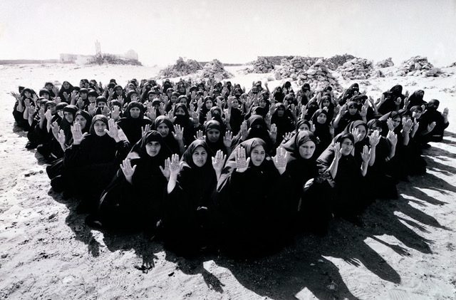The changes that Neshat observed of Iran’s political and religious upheaval upon her return in 1990, were both “shocking and exciting.” This new ideology had transformed the country’s culture in both appearance and habit. Her 1993-97 series Women of Allah gave expression to the inherent militancy that had infused Iran’s Islamic fundamentalism. This work signified the breaking of the dam of emotion built up from childhood of an inner dichotomy between her non-religious upbringing amid a conservatively religious Iranian town. She recalls having had tea in her garden as a child, and bursting into tears at the sound of quranic chanting.