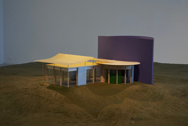 The roof of Demand’s Triple Folly model was inspired by a creased legal size paper, a nod to the laws and regulations governing the realization of any actual building. As they say, “All is fair in love and war.” Yet as Demand has demonstrated in numerous past works, “folly” arrives in three dimensions, and who is to account for what happens inside the things we build?
